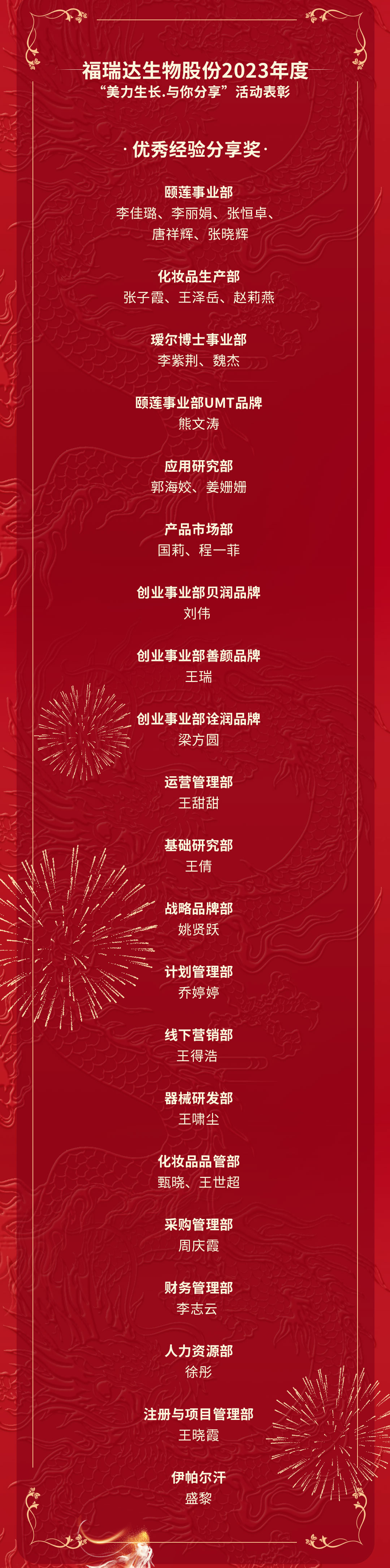 這一年,人力資源部根據(jù)公司長期戰(zhàn)略規(guī)劃和2023年管理綱要,為傳播公司內(nèi)部優(yōu)秀員工和優(yōu)秀案例經(jīng)驗,提升員工工作技能,營造全員學(xué)習(xí)氛圍,沉淀組織能力資產(chǎn),特在公司內(nèi)部開展“美力生長 與你分享”全員分享活動,并將優(yōu)秀作品結(jié)集發(fā)布。本合集收納了公司2023年度共31期“美力生長 與你分享”優(yōu)秀作品,包括銷售、研發(fā)、生產(chǎn)和職能4大板塊,21個部門的31篇案例。會上,對31位優(yōu)秀分享者進行了表彰。
